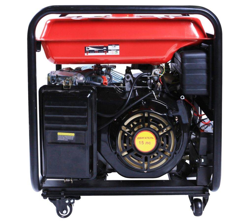 Самый мощный генератор обзора подходит для бытовой эксплуатации и успешного решения профессиональных задач. Мощности достаточно для удовлетворения потребностей крупной семьи (5-6 человек) при круглогодичном проживании в собственном доме. При необходимости к бензогенератору можно подключить станок, несколько ручных инструментов с электроприводом, сварочный аппарат. Даже при длительном рабочем цикле генератор поддерживает оптимальный температурный режим в жаркую погоду. Зимой в сильный мороз двигатель запускается быстро с помощью электростартера.