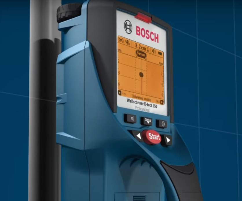 К примеру, тот же Bosh GMS 120 Prof на передней панели имеет клавиши выбора материала – дерево, металл, проводка под напряжением.