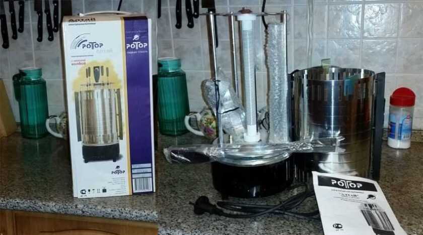 - Механизм вращения. Рекомендуется отдавать предпочтение варианту вращения вокруг собственной оси, благодаря чему быстрее и качественнее прожаривается мясо. Наилучшие варианты, где скорость приготовления колеблется от 15 до 30 минут как электрошашлычница «Чудесница».