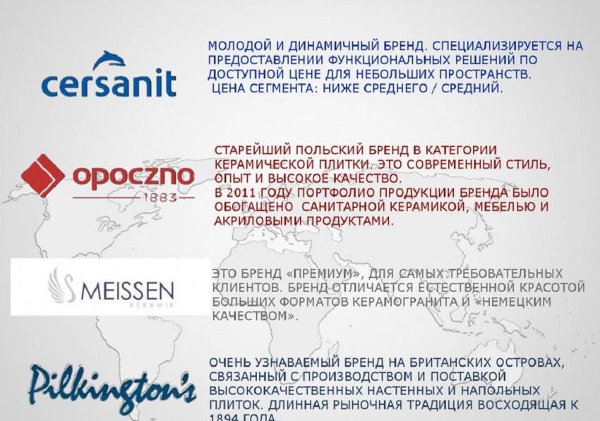 | Бренд | Атлас Конкорд | Керама Марацци | Эстима | Италон | Керамин |