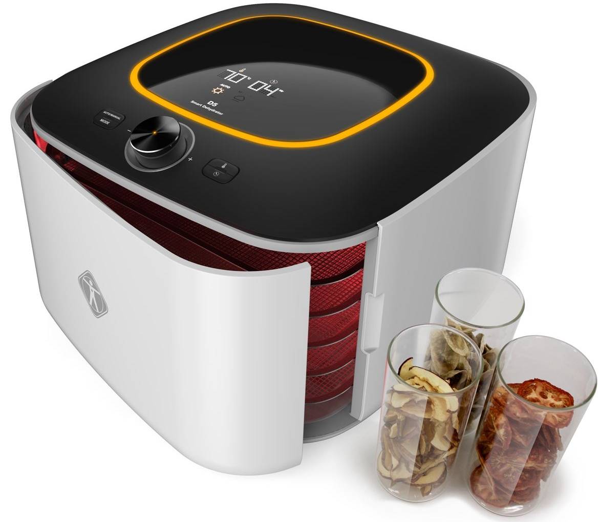 Лучшая сушилка нового поколения. «Умный» инфракрасный дегидратор в точности имитирует подсушивание продуктов в природных условиях – под солнцем и в тени. В приборе заложены датчики влажности. Они определяют, когда должно закончиться время сушки. Интеллектуальная система способна сама установить время и температуру тепловой обработки продуктов.
