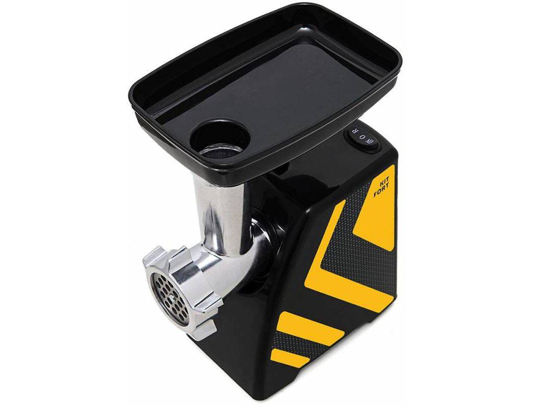 Электрическая мясорубка Kitfort КТ-2101 обойдется вам около 2400 руб., она имеет непритязательный набор возможностей и признаки надежного устройства для маленькой кухни, подходящего для длительной эксплуатации. Кроме нестандартного корпуса, выполненного в черном цвете с яркими полосками, модель отличается очень компактными габаритами и легкостью. Она свободно помещается в любой ящик на кухне с другими кухонными приборами и не занимает много места. Поставляется мясорубка российской компанией Kitfort, производится в Китае, что не мешает ей обладать надежной конструкцией