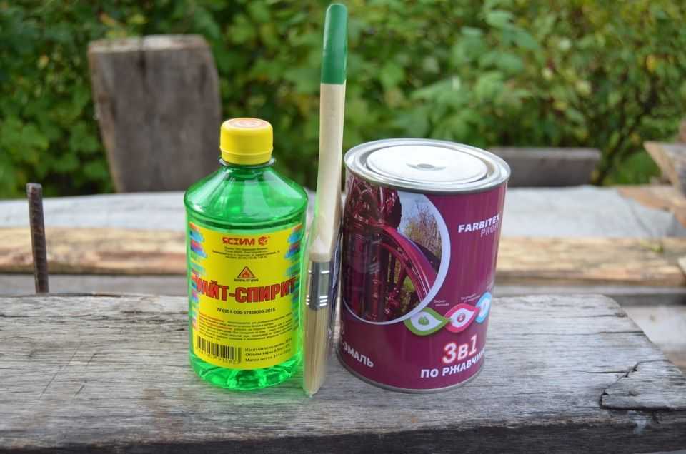 Перед покраской металла, его следует обработать уайт-спиритом — краска будет держаться лучше