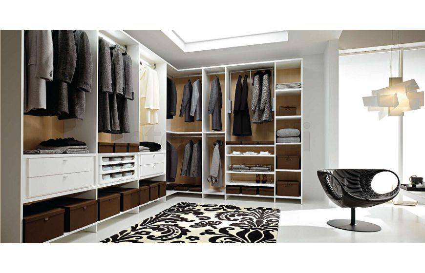 Опытные дизайнеры рекомендуют угловую гардеробную разделить на несколько зон.