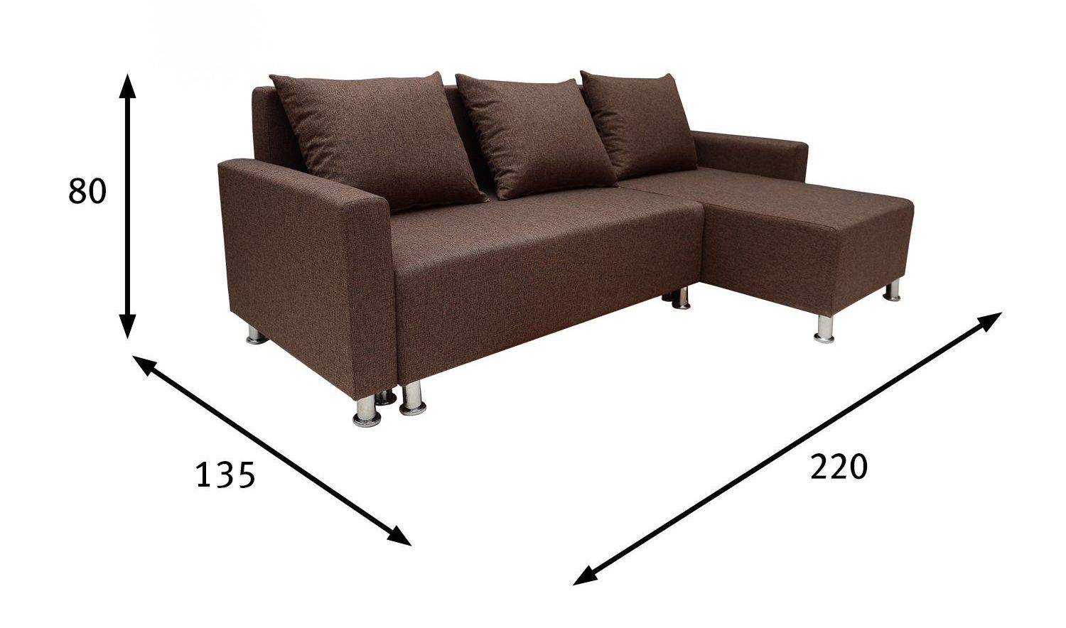 Встроенный механизм трансформации позволяет получить удобную кровать из углового дивана для гостиной, размеры спального места зависят от способа раскладывания. Самыми популярными считаются модели, оснащенные системой трансформации «Дельфин». В этих конструкциях спальная зона располагается под сиденьем. Чтобы получить кровать, необходимо выкатить этот блок, после чего немного приподнять его. Ширина спального места будет состоять из ширины выкатной секции и ширины самого сиденья.