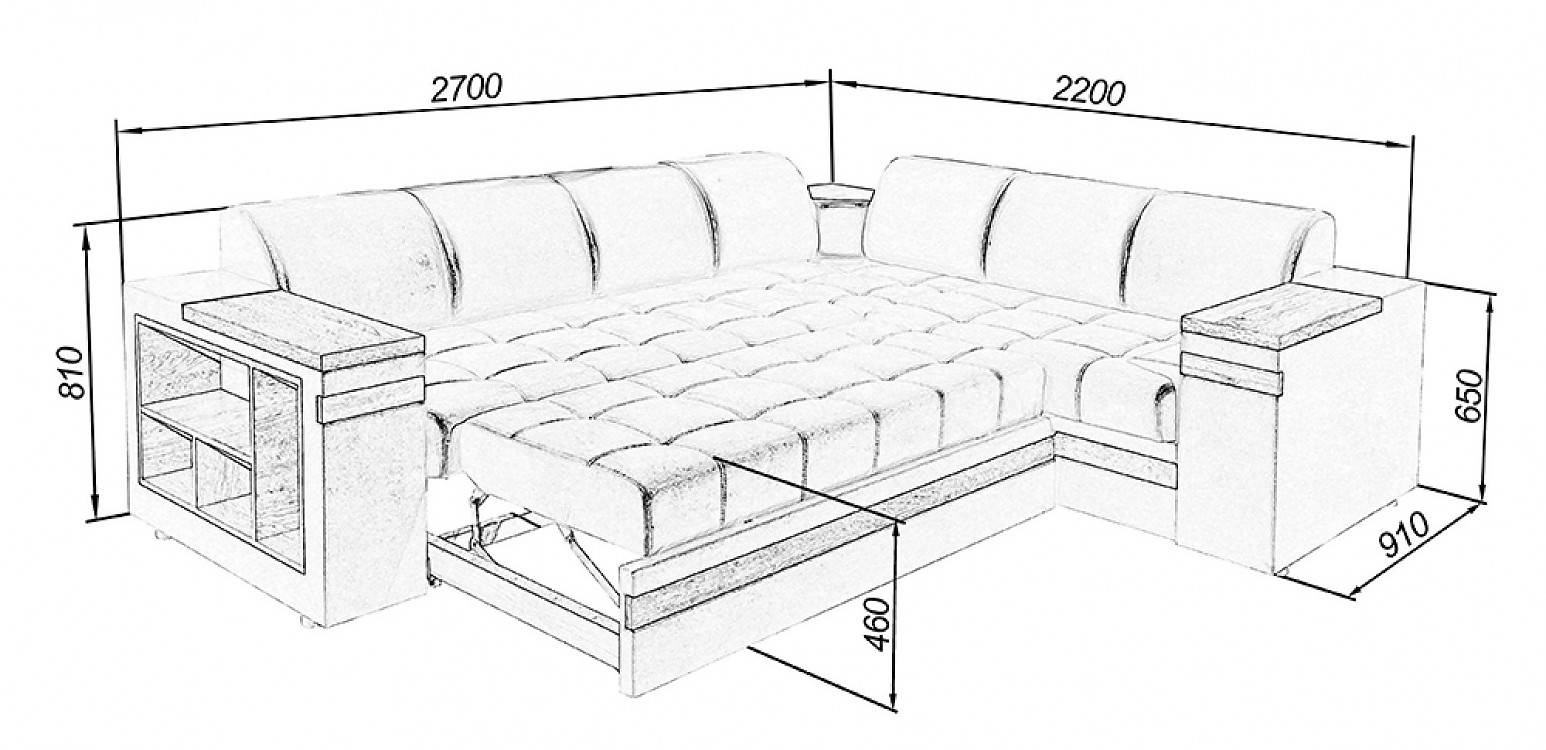 Обычно небольшие бары располагаются в средней зоне дивана. Спальное место может иметь следующие размеры: от 200 см на 140 см, и до 300 см на 200 см.