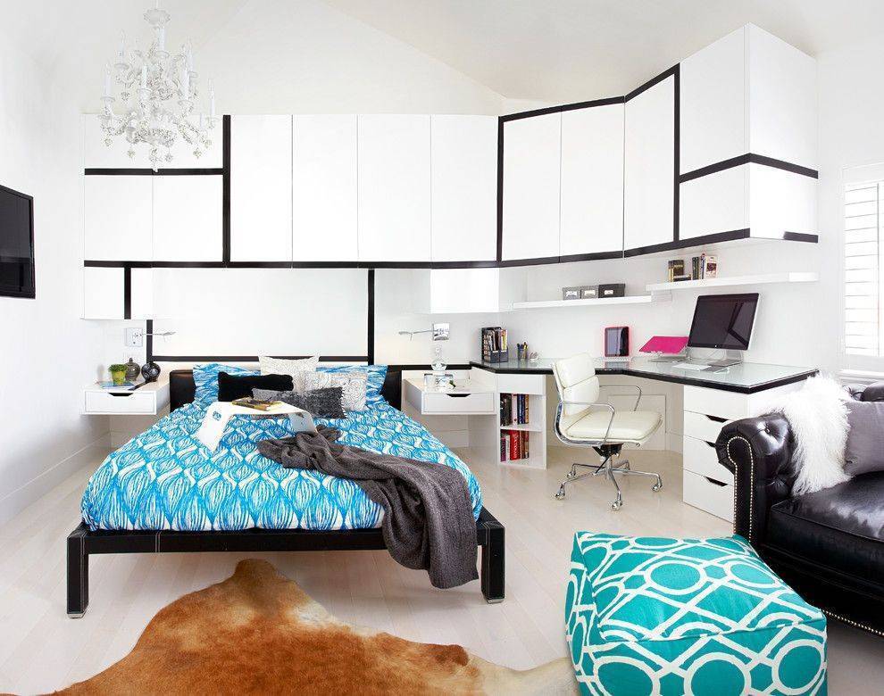 Чтобы визуально увеличить пространство, всегда используют белый цвет. Однако обычный белый однозначно вызовет дискомфорт и тревогу, потому что ассоциируется с больничными помещениями. Пусть он будет дополнением к любому другому цвету или основным, но декорированным чем-либо.