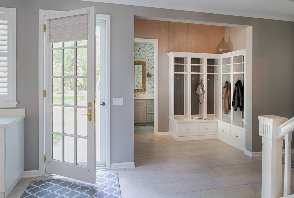 Комбинируйте материалы, чтобы органично вписать шкаф в интерьер.
