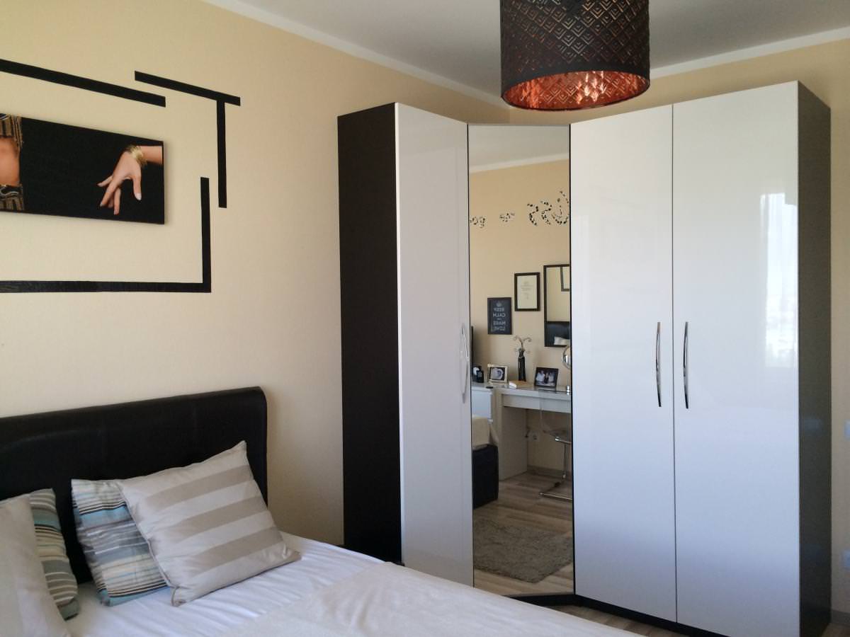 Угловой шкаф компактен и эргономичен в соответствии с особенностями помещения. Говоря о выборе цвета, следует остановиться на варианте, который наилучшим образом соответствует цветовой гамме стен. Это хорошее решение для маленькой спальни, потому что, таким образом, гардероб не будет визуально загромождать комнату. Цветовые контрасты отлично подходят для больших помещений. Особенно передняя и наружная часть гардероба может добавить изюминку интерьеру спальни. Материалы для отделки могут быть следующими: