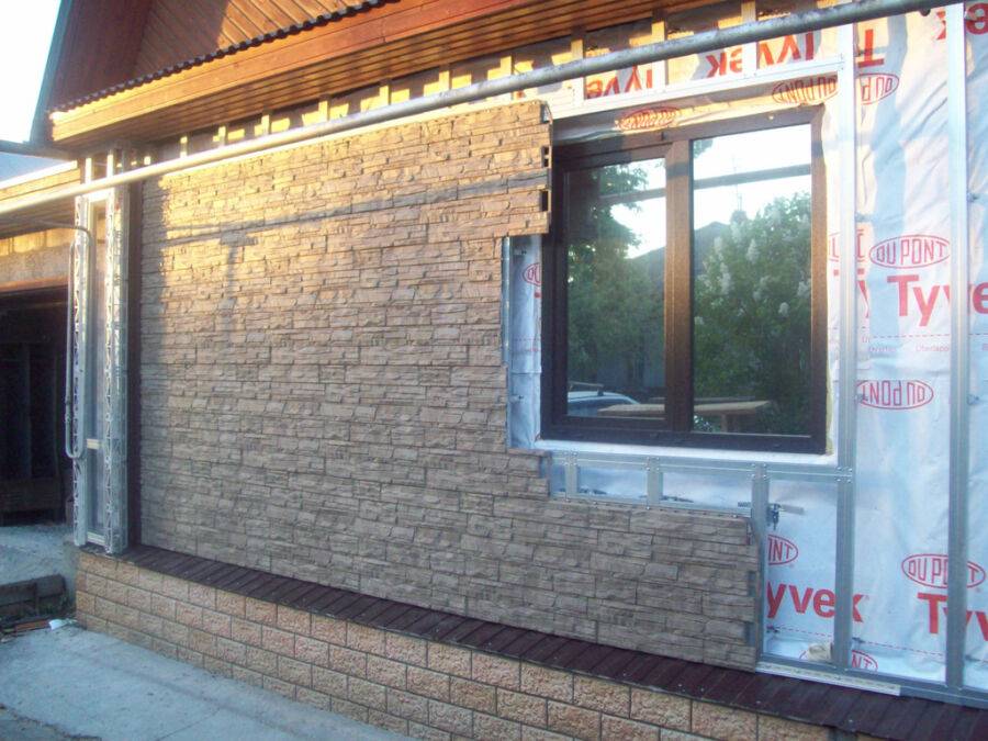 Установка конструкции фасадной плитки происходит по принципу монтажа вентилируемых фасадов: