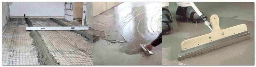 Мы описали инструкцию так называемых сухих оснований для плитки. Влажные делать намного сложнее, надо готовить большой объем раствора, выкладывать маячки, по ним делать стяжку и т. д. Если есть вероятность подвижек пола, то стяжка усиливается за счет армирования.