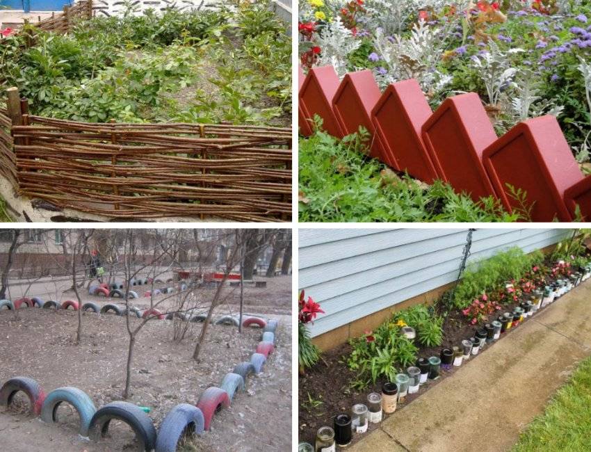 Дачники, обладая фантазией и имея желание, могут сделать компактные ограждения, бордюры или невысокие изгороди, используя такие материалы: