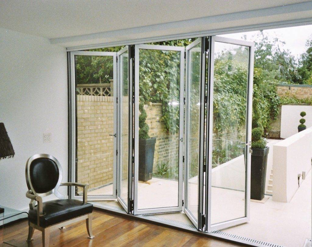 Открытие-закрытие по принципу гармошки. Позволяет зонировать пространство, эффективно его экономит. Такие террасные двери удобны в эксплуатации, практически полностью высвобождают проем в сложенном виде. Но теплопотери могут быть достаточно высокими, такие двери не теплые, они не подойдут для балкона, но актуальны для веранд, террас.