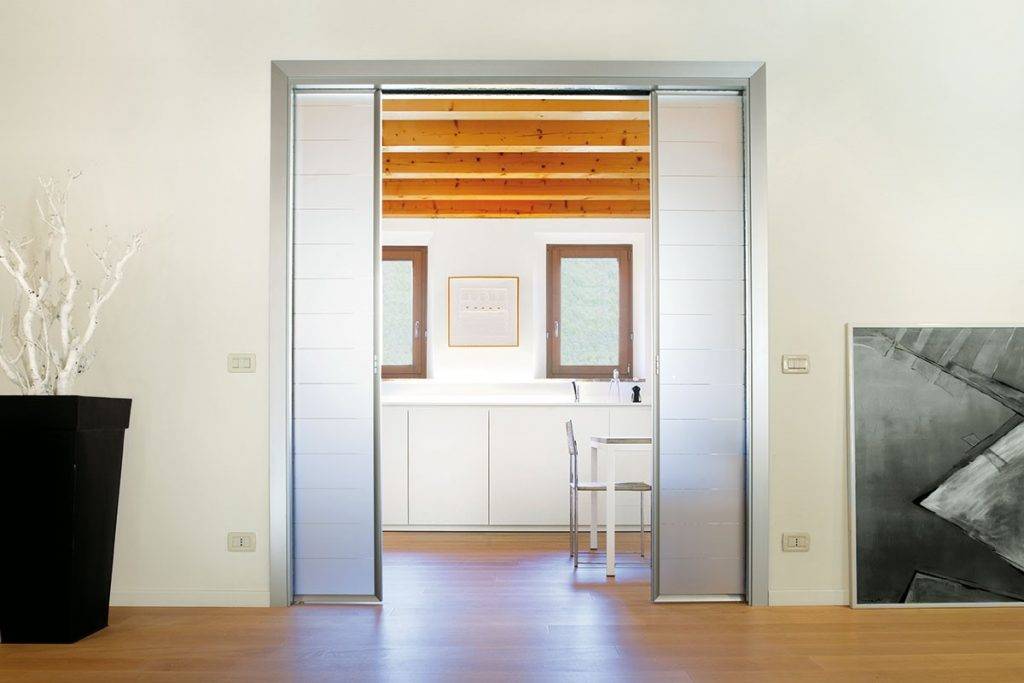 - Раздвижные дверные конструкции в двупольном исполнении устанавливаются в стандартные проёмы от 1200 до 3000 мм.