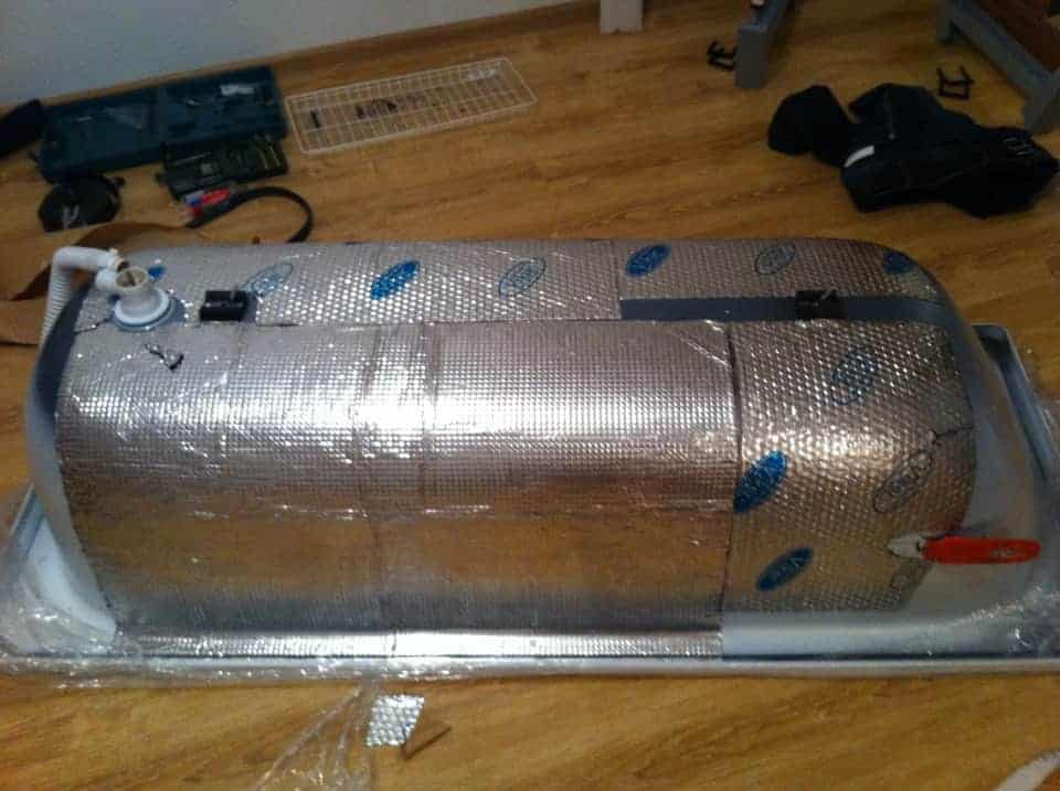 - Используя монтажную пену, следует задуть днище и бока. В результате получится своеобразный “термос”. Пены потребуется примерно 4-5 баллонов.