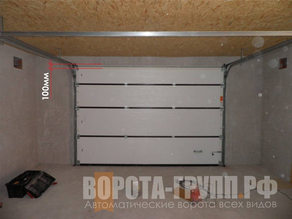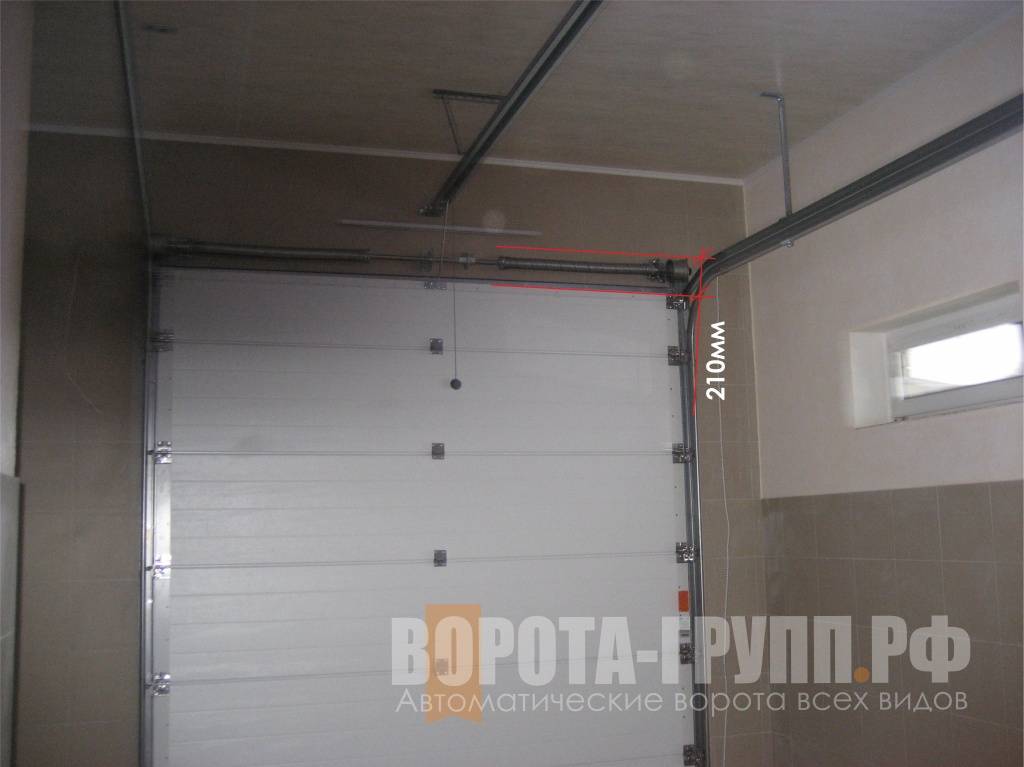 Несущую функцию выполняет потолок и поперечная перемычка над проемом, поэтому легкая конструкция потолка не подойдет для секционных ворот. Его глубина должна быть больше высоты ворот: