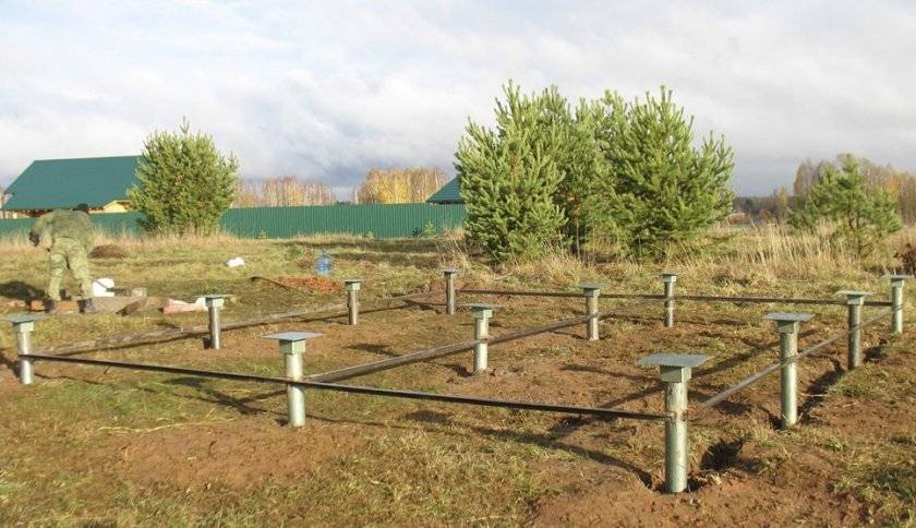 Как правило, в верхней части, сваи связывают между собой либо монолитной плитой, либо так называемым ростверком. Верх конструкции и будет основанием для будущих стен.