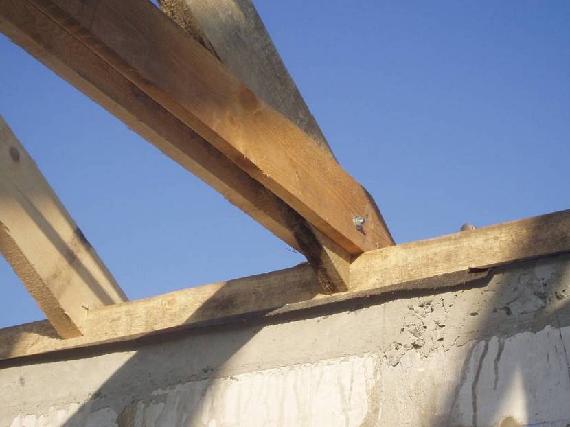 Крепить стропильные балки следует либо путем установки их в подготовленные пазы и укрепляют крепежными элементами, либо путем крепления досчатых накладок.