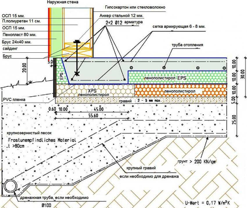 Это, правда, очень усредненный расчет, основанный на том, что толщина утепления будет именно 100 мм. Но эта величина может быть и больше — все зависит и от климатических условий региона, и от материала фундамента, и от типа утеплителя.