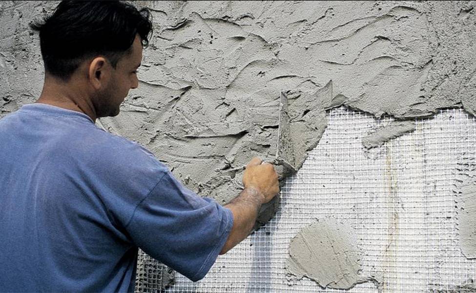 - Штукатурка — самый распространенный вид отделки. На утеплитель устанавливают сетку, затем наносят смесь, в основном применяют финишную штукатурку. Массу наносят в 2 слоя, предыдущий должен хорошо высохнуть, затем покрывают стену вторым. Если нужно красиво отделать, то покупают декоративную штукатурку. Иногда применяют фасадную смесь, в ее состав входит мраморная, гранитная, кварцевая или песчаная крошка.