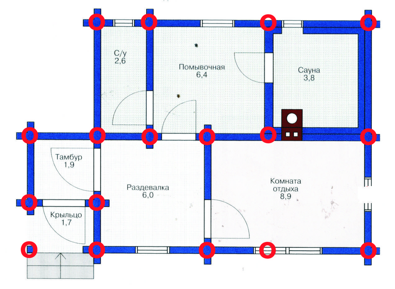 - винтовые сваи обеспечивают эффективную автоматическую вентиляцию подпольного пространства бани;