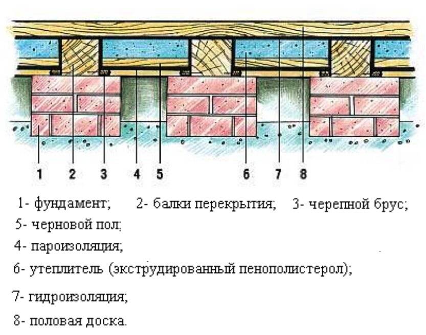 Порядок расположения основных слоев при устройстве утепления пола в деревянном доме своими руками: