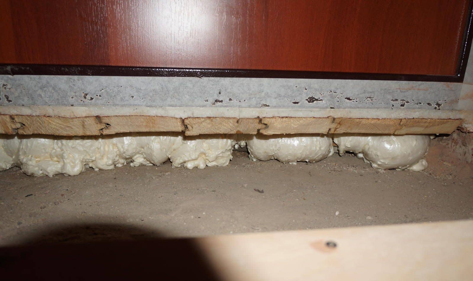 Если из порога дует, необходимо утеплить его хотя бы монтажной пеной, а лучше — напыляемым утеплителем