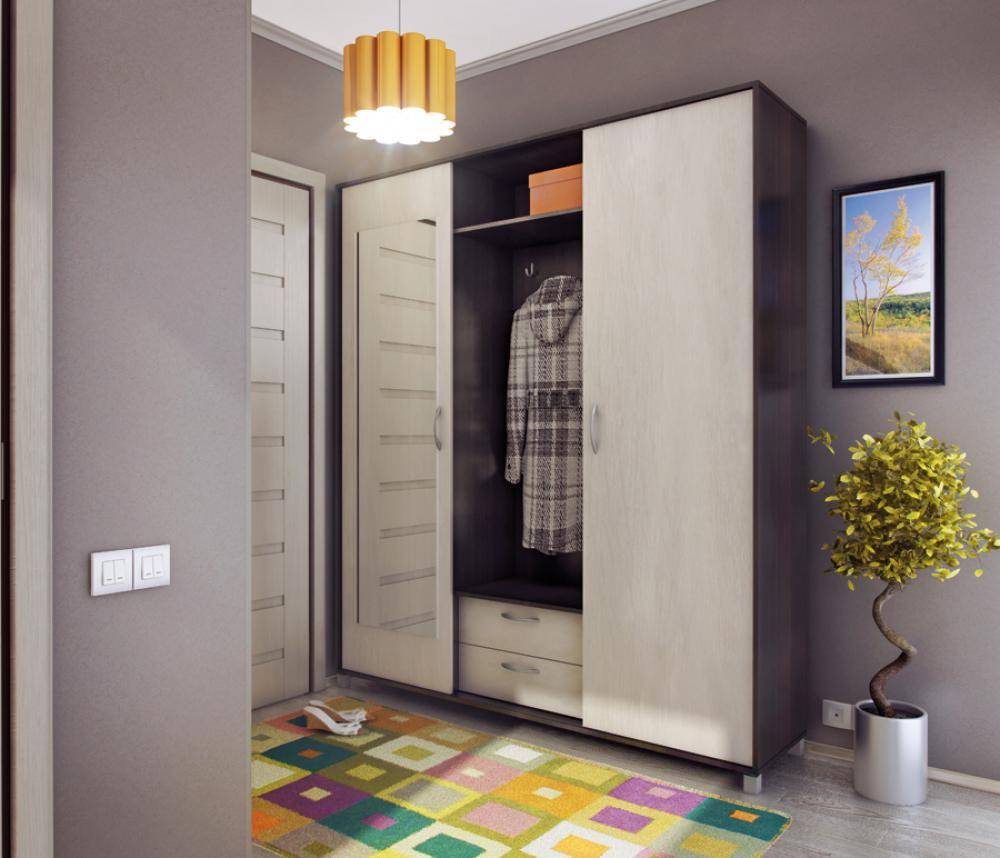 Цвет шкафа зависит от стиля прихожей, отделки стен и пола, освещения: