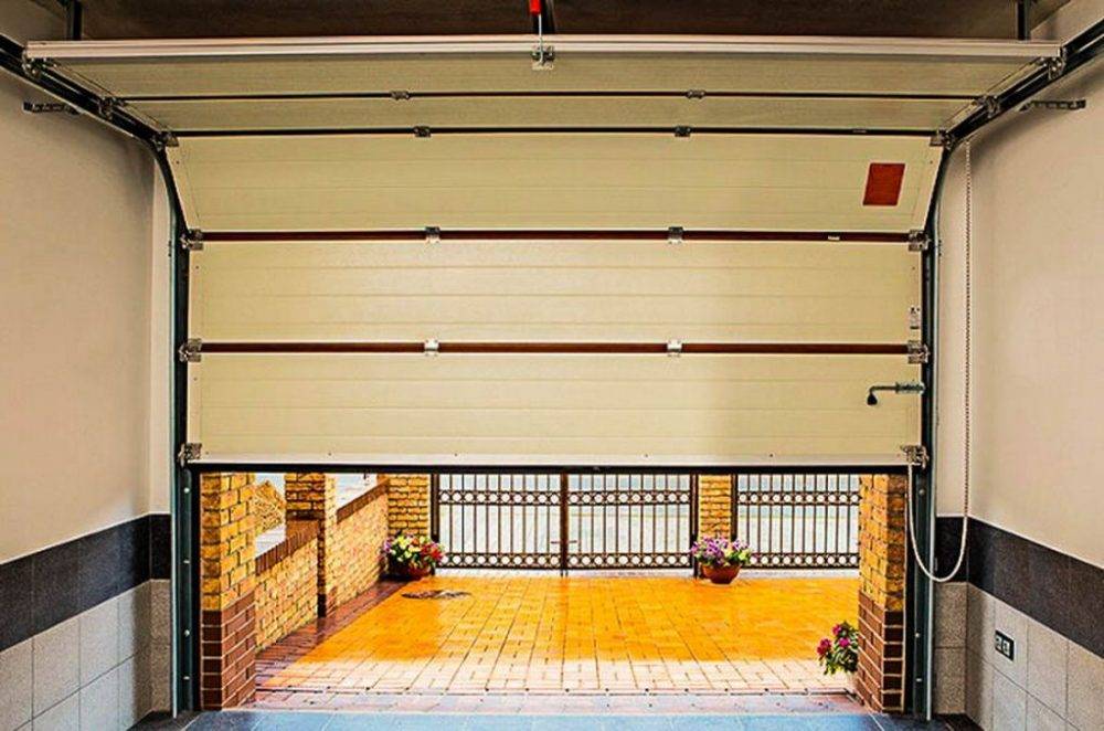 Работают по принципу подъемных, но при открытии делятся по секциям и складываются под потолком. Движутся по направляющим при помощи пружинного механизма.