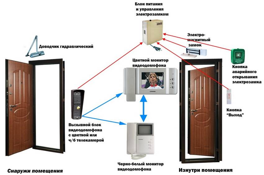 Существуют модели видеодомофонов с возможностью подключения нескольких видеокамер и переговорных устройств