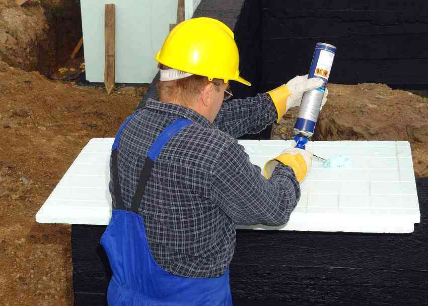 Нанесение клея на плиты пенополистирола, являющегося эффективным утеплителем