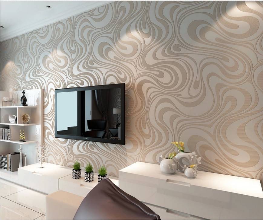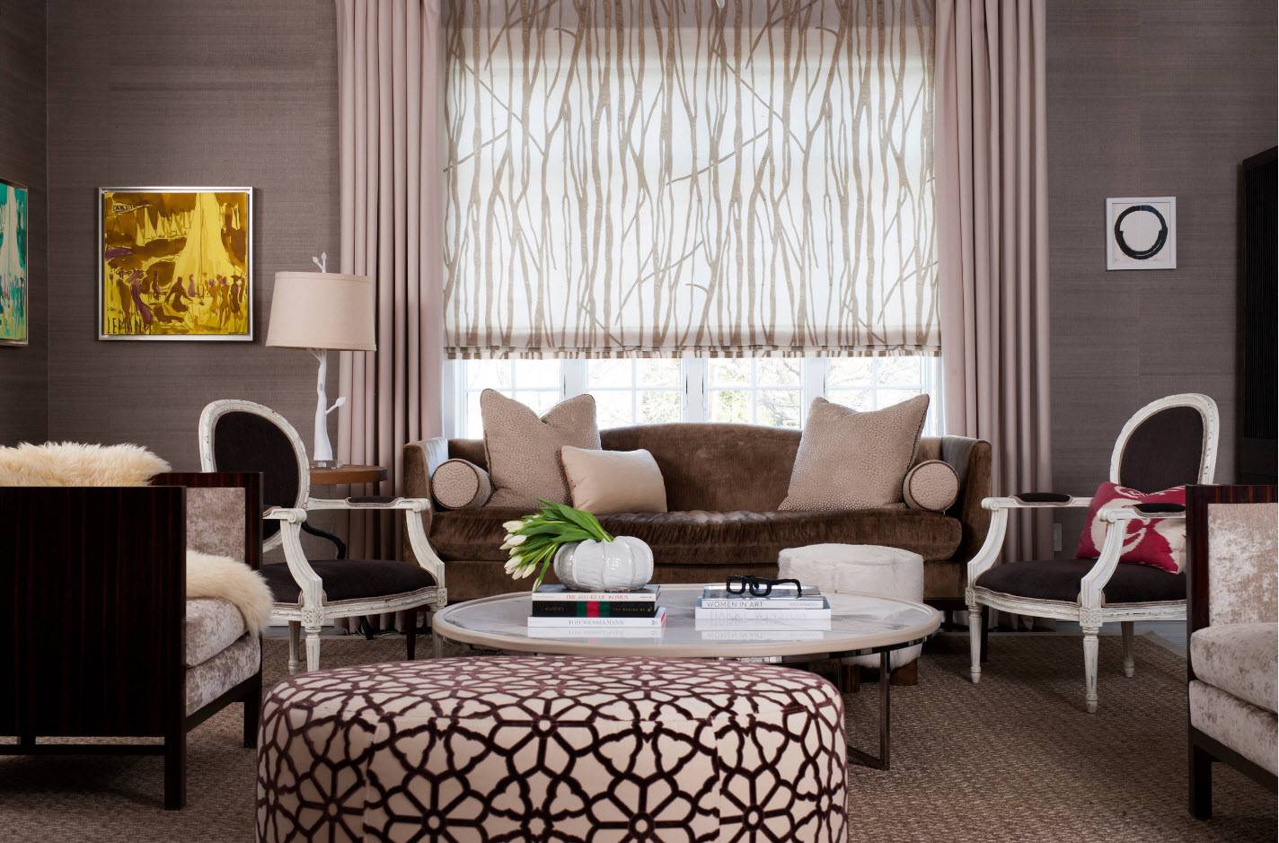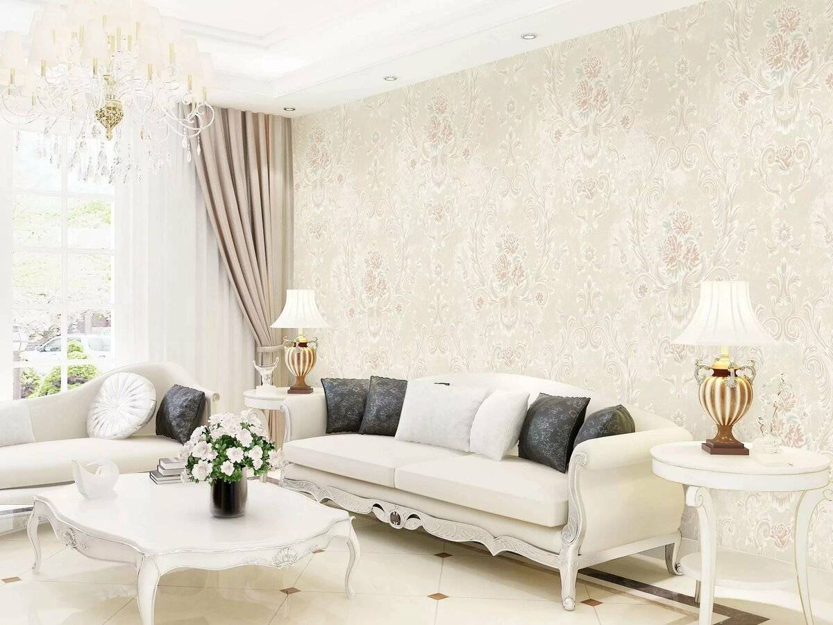 Виниловые обои нейтрального цвета с выпуклым рисунком сделают гостиную особенно нарядной.