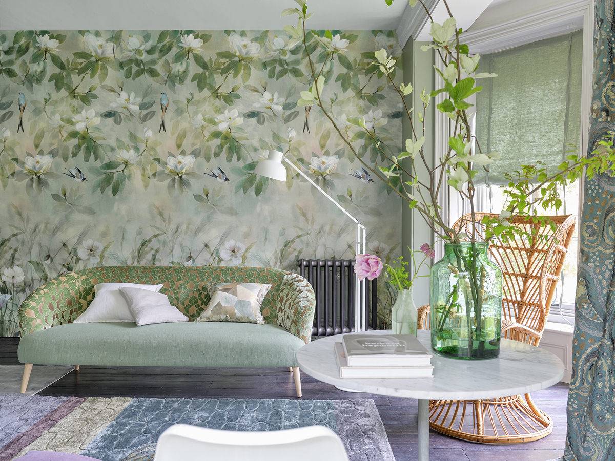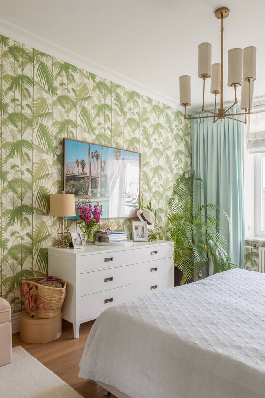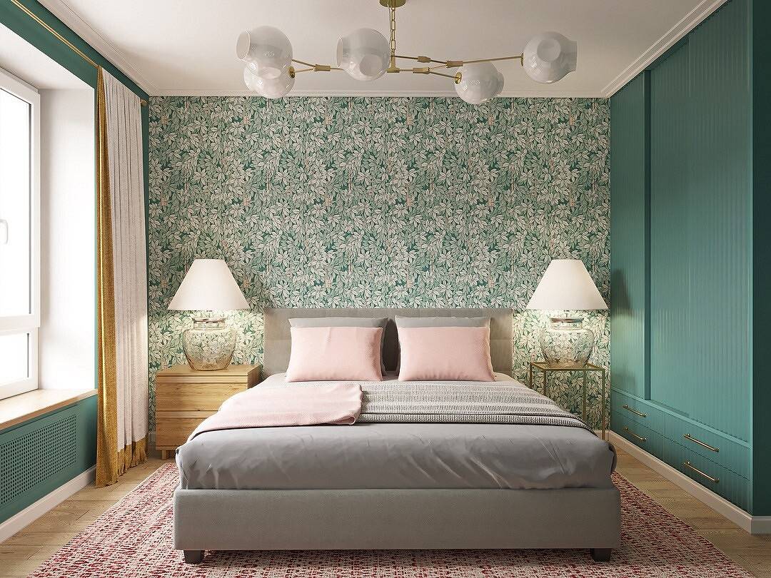 Благодаря использованию приглушенных цветов обои на стене будут хорошо сочетаться с другими элементами — это гарантирует, что весь дизайн будет гармоничным и все будет соответствовать.