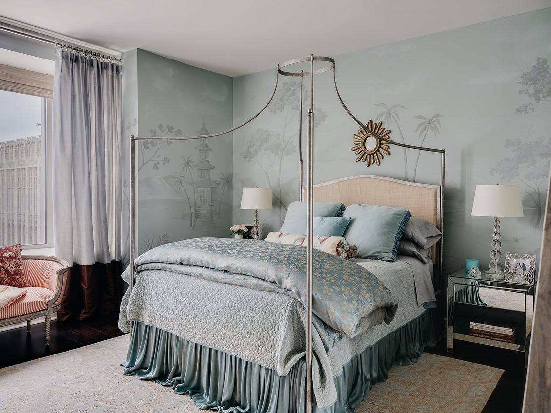 Самые модные сочетания — использование серого и пастельных тонов. Серые обои за кроватью и пастельно-зеленые шторы гарантируют, что интерьер будет не только красивым, но и уютным. Решаясь на серые обои в спальне, не забудьте выбрать правильное изголовье. Лучше всего будут смотреться контрастные цвета: