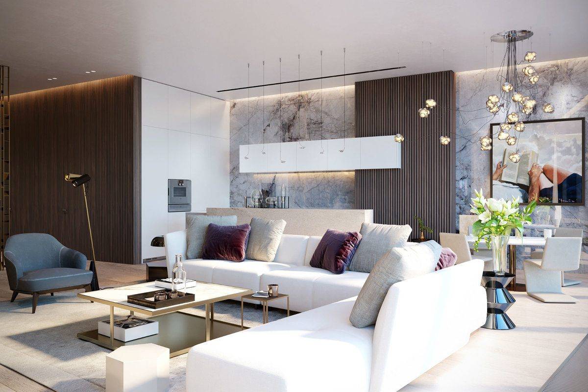 - Если вы хотите, чтобы гостиная выглядела более воздушно, выбирайте светлую отделку для светлой мебели. Это поможет предметам «раствориться» на фоне и меньше бросаться в глаза.
