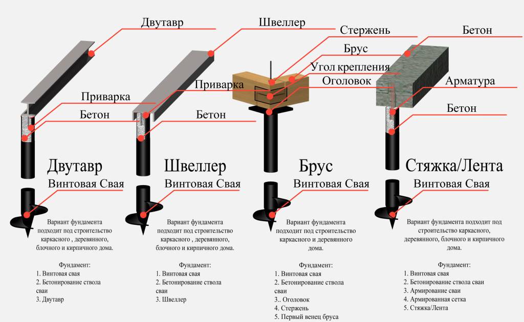 Cвайно-ростверковый, свайно-винтовой, свайно-ленточный. У каждого типа есть достоинства и недостатки, мы рассмотрим их подробнее.