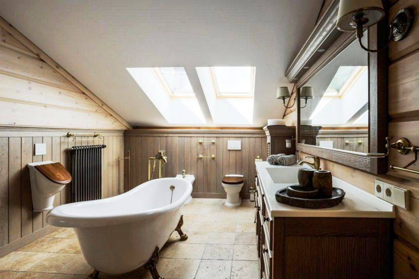 Для комнат, в которых преобладает этнический стиль, следует осуществлять отделку материалом с имитацией дерева. На их фоне деревянная мебель и хлопковые занавески с мелким цветком создают уютную атмосферу. Но подобный декор не рекомендуется для душевой кабины, так как будет смотреться неуместно. Смелой идеей считается и облицовка ванной пластиком с имитацией под мрамор. Он идеально заменит керамику, а красивая текстура дополнительно подчеркнет натуральность интерьера.