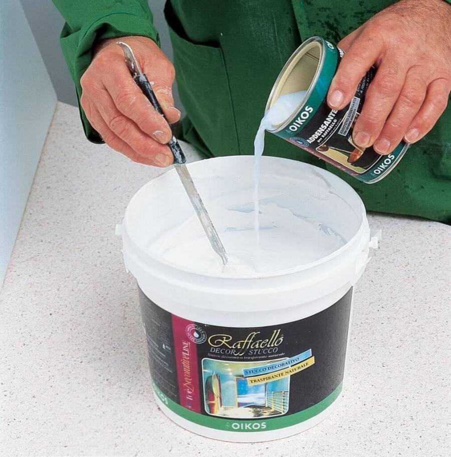 Воду (или разбавители) наливают в краску небольшими порциями. Для точного дозирования рекомендуется использовать мерную ёмкость. Одновременно с разбавителем в краску можно добавить вещества, позволяющие придать покрытию какие-либо особые эффекты (например, неоновое свечение).