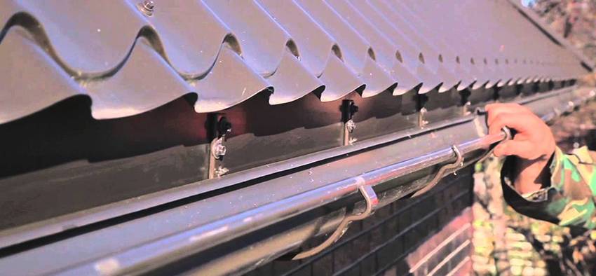 Хорошо, если монтаж водостока производится до настила кровли. Тогда крепление кронштейнов производится на крайнее стопило или перекладину и впоследствии закрывается кровельным материалом. Если кровля уже настелена, то крепление кронштейнов возможно к ветровой доске.