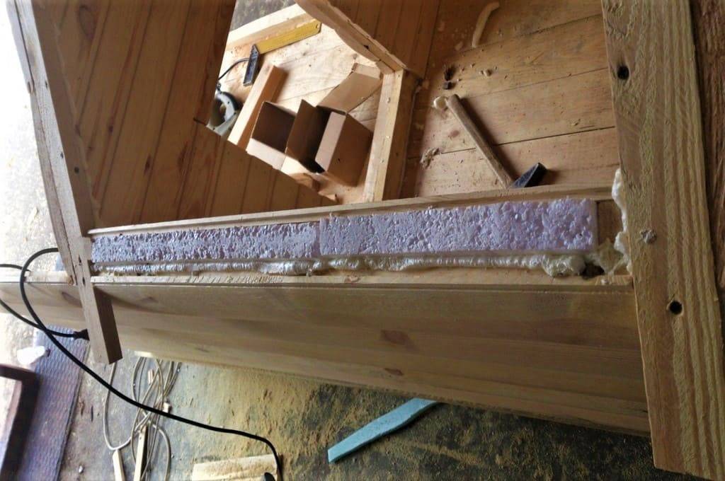 По стойкам каркаса требуется установить ветрозащитную плёнку, а внутри неё разместить утеплитель. В качестве последнего используется пенопласт, базальтовая вата или схожие с ними материалы. При укладке утеплителя не должно оставаться пустот. Это позволит избежать промерзаний.