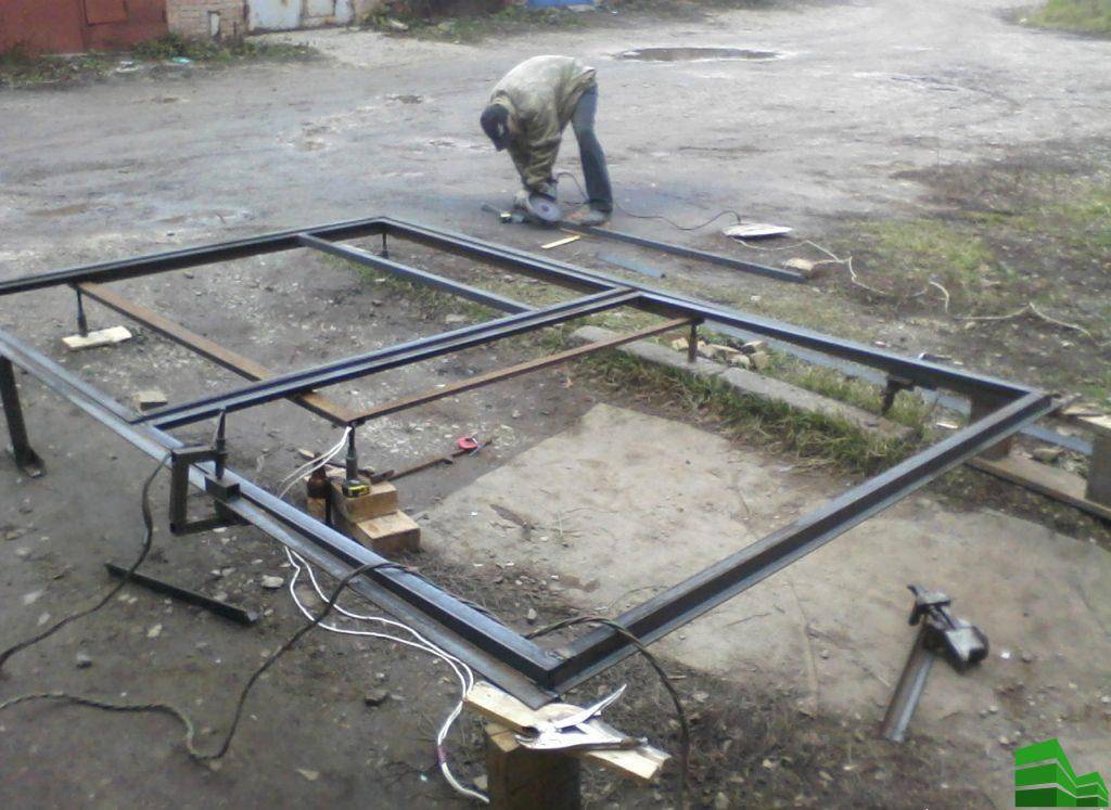 Для изготовления каркаса используют профильную трубу или уголок. Раму собирают на болтах или сваривают, обрабатывают антиржавчиной, грунтуют.