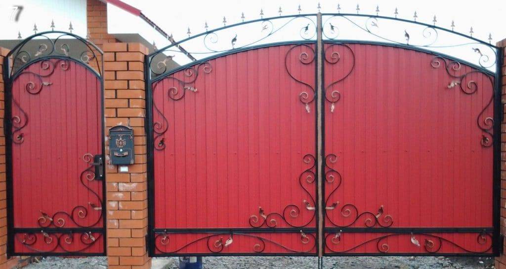 Чтобы металлические листы смотрелись более роскошно, их украшают кованными элементами и придают им округлые формы