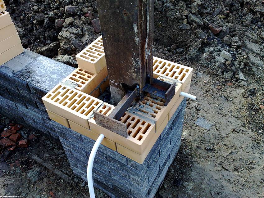 Укрепленные столбы требуется обложить кирпичом