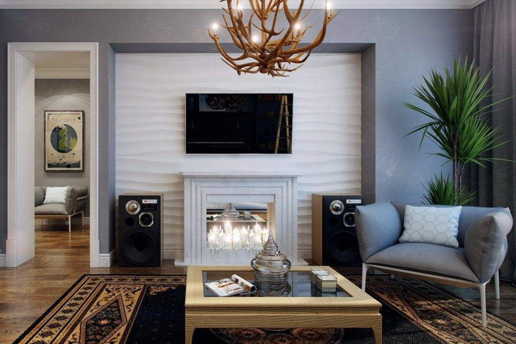 Если камин предполагает крепление на стену кронштейнами, то подойдет практически любая стена, на которой есть для этого место. Главное, чтобы был доступ к розетке.