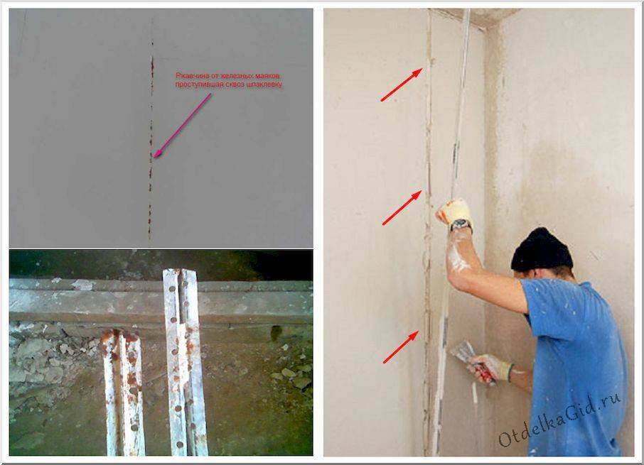 - Некоторые проблемы могут возникнуть с установкой маяков. Для этого используется гипс, потому что он быстро схватывается, но это потребует аккуратности.
