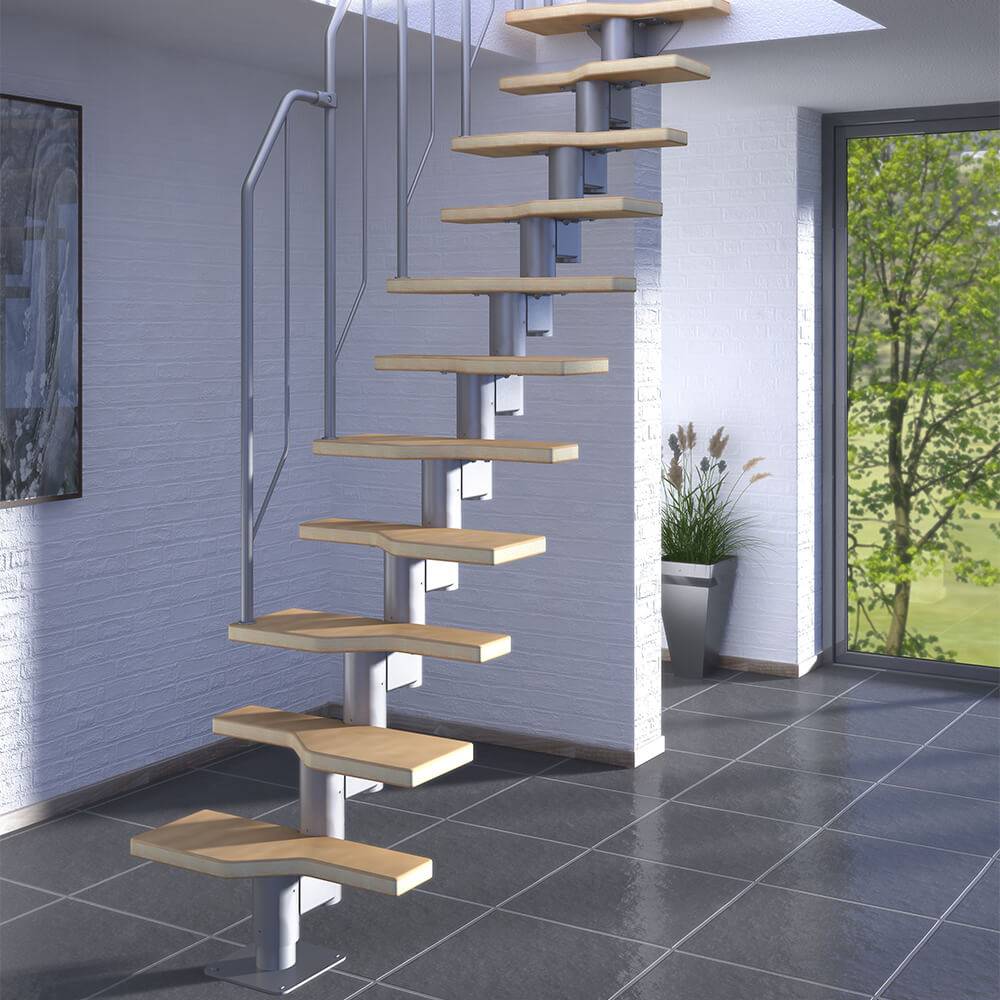 Удачным решением для межэтажного сообщения в частном доме являются модульные системы, которые можно собрать в любой конфигурации, для любого размера проема (от 0,8 м шириной), с регулировкой комфортного наклона, l желаемого угла поворота. Преимущества модульных лестниц: не скрипят, монтаж за 3-6 часов Легко ремонтировать, модифицировать. Его можно быстро разобрать, при необходимости переставить.