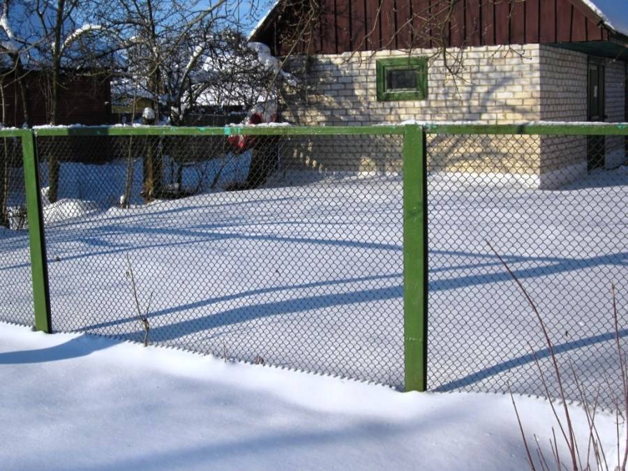 Как уже говорилось выше, конструкция забора из рабицы может быть различной. Каждый из вариантов имеет свои преимущества и недостатки, связанные обычно с уровнем надежности ограждения и простотой выполнения монтажа.