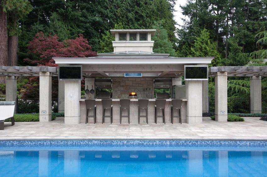 Павильон с барбекю во дворе частного дома