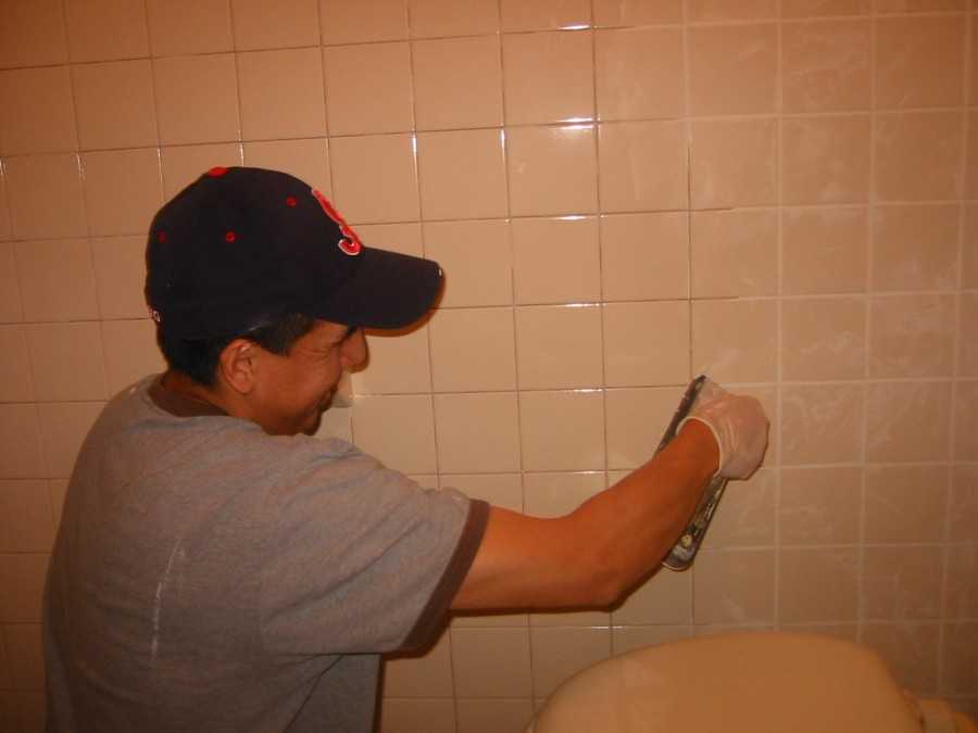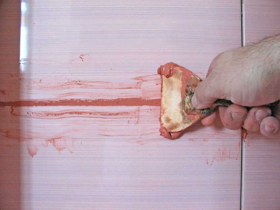- Глянцевая плитка требует смеси полиуретана и латекса. Возможно использование вяжущего состава с мелкой зернистостью, затирка абразивом здесь категорически запрещена.