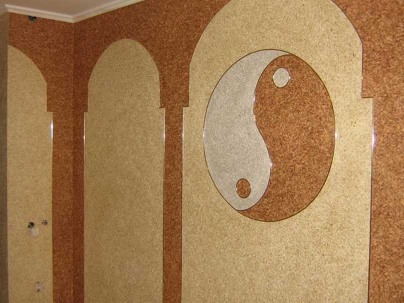 - Если стена обладает множеством выступов, обычными обоями обклеить ее довольно затруднительно, а с жидкими такая проблема вообще не стоит.